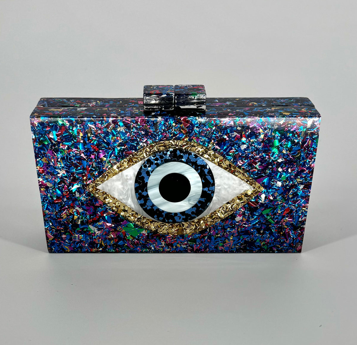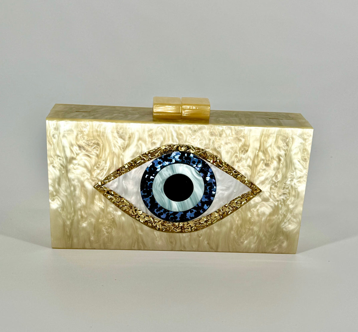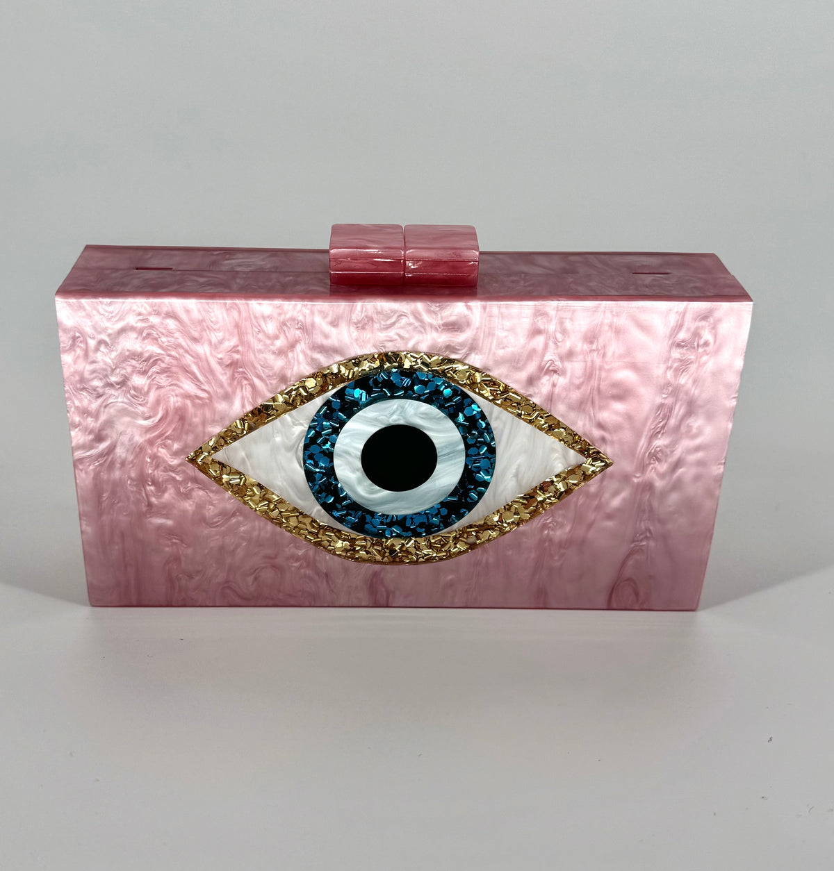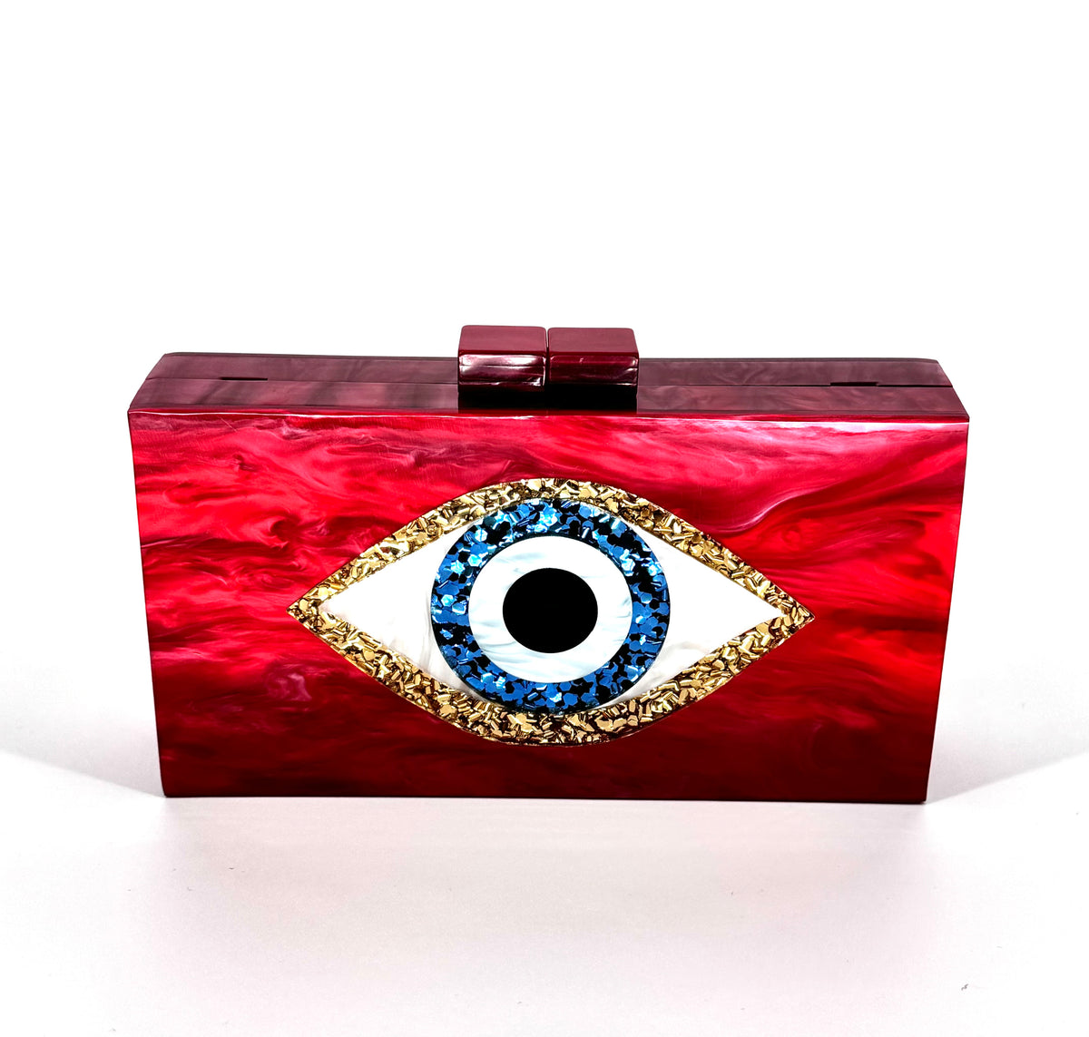 Evil eye bag in so many different colors it will be hard to choose! Maybe get one of each... for each outfit! Hey, if there's a will there's a way! Comes with gold shoulder strap.