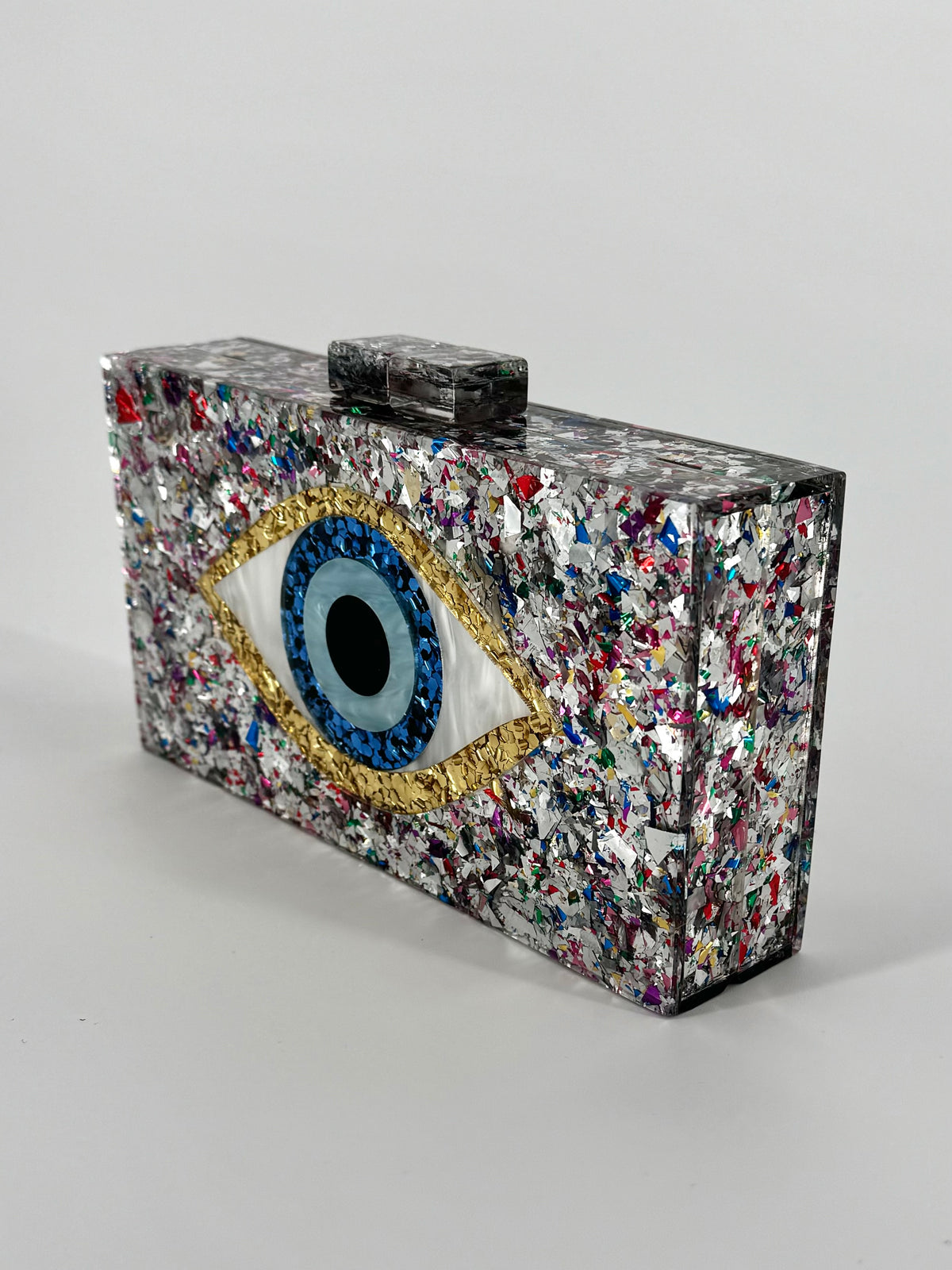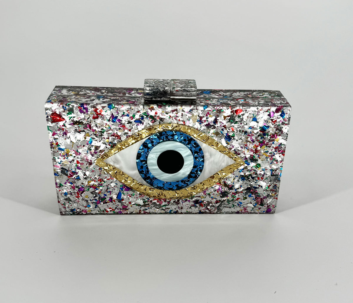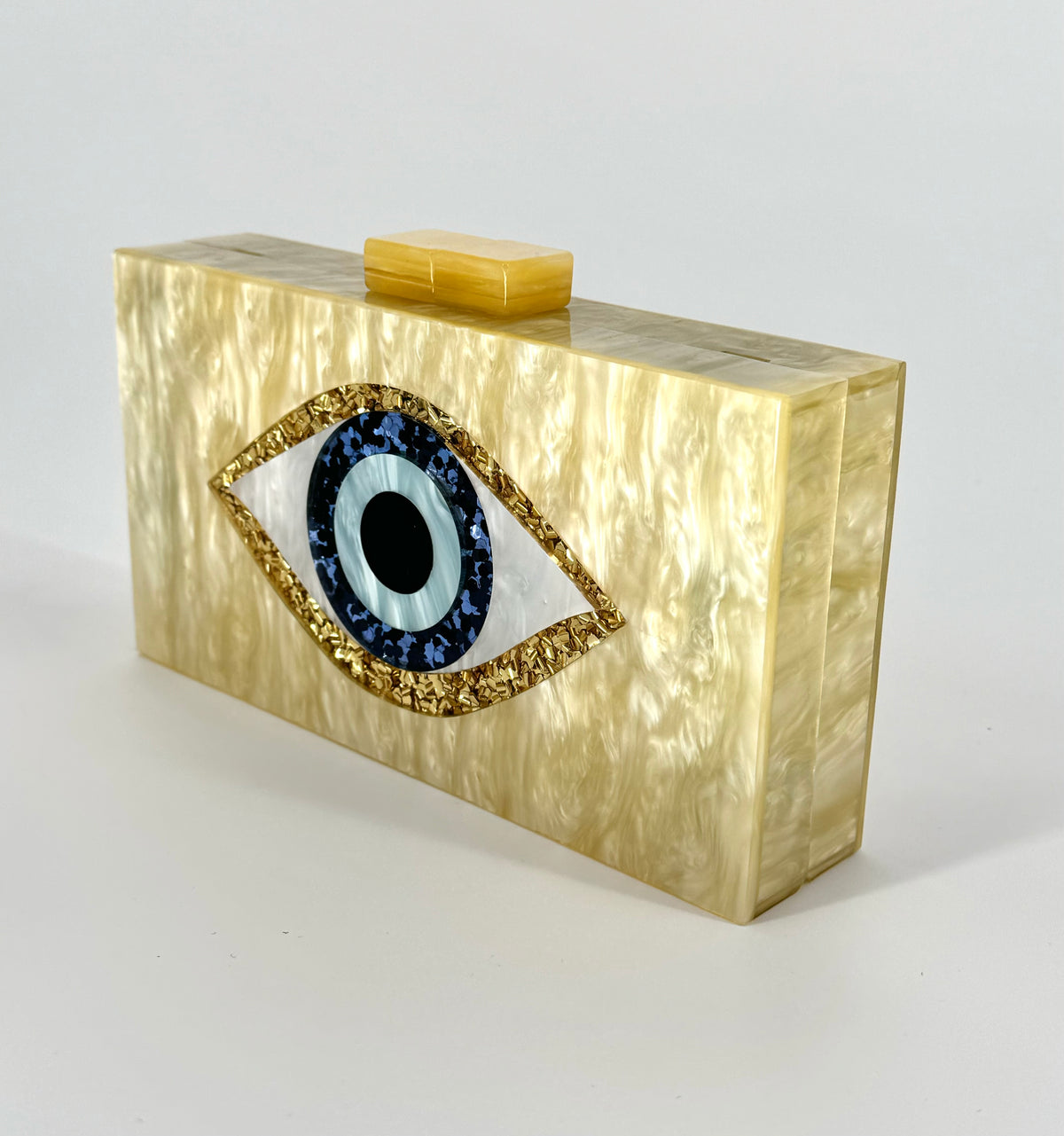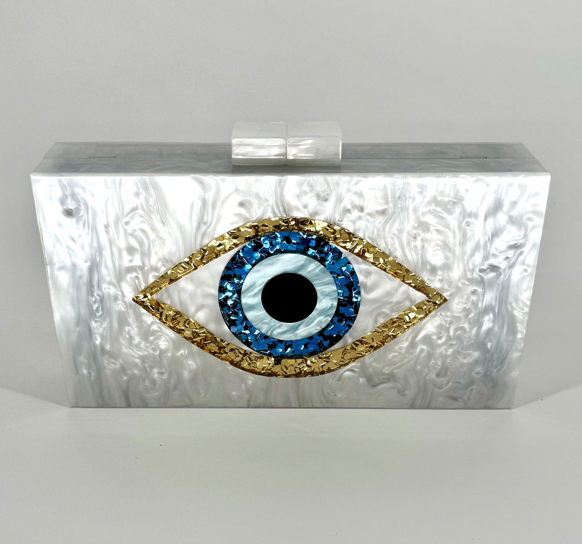 Evil eye bag in so many different colors it will be hard to choose! Maybe get one of each... for each outfit! Hey, if there's a will there's a way! Comes with gold shoulder strap.