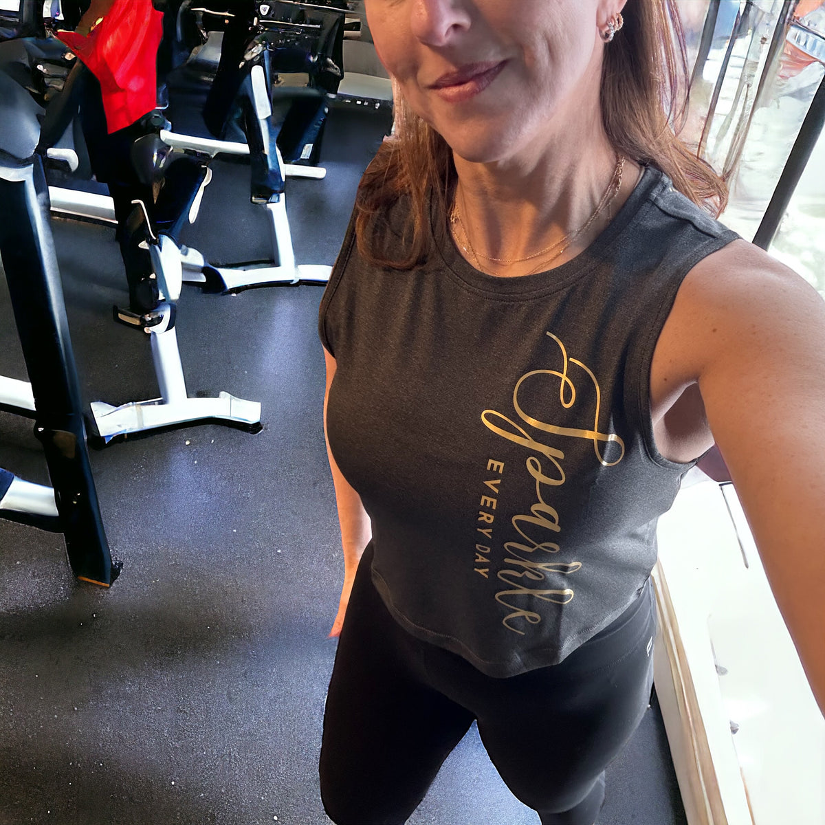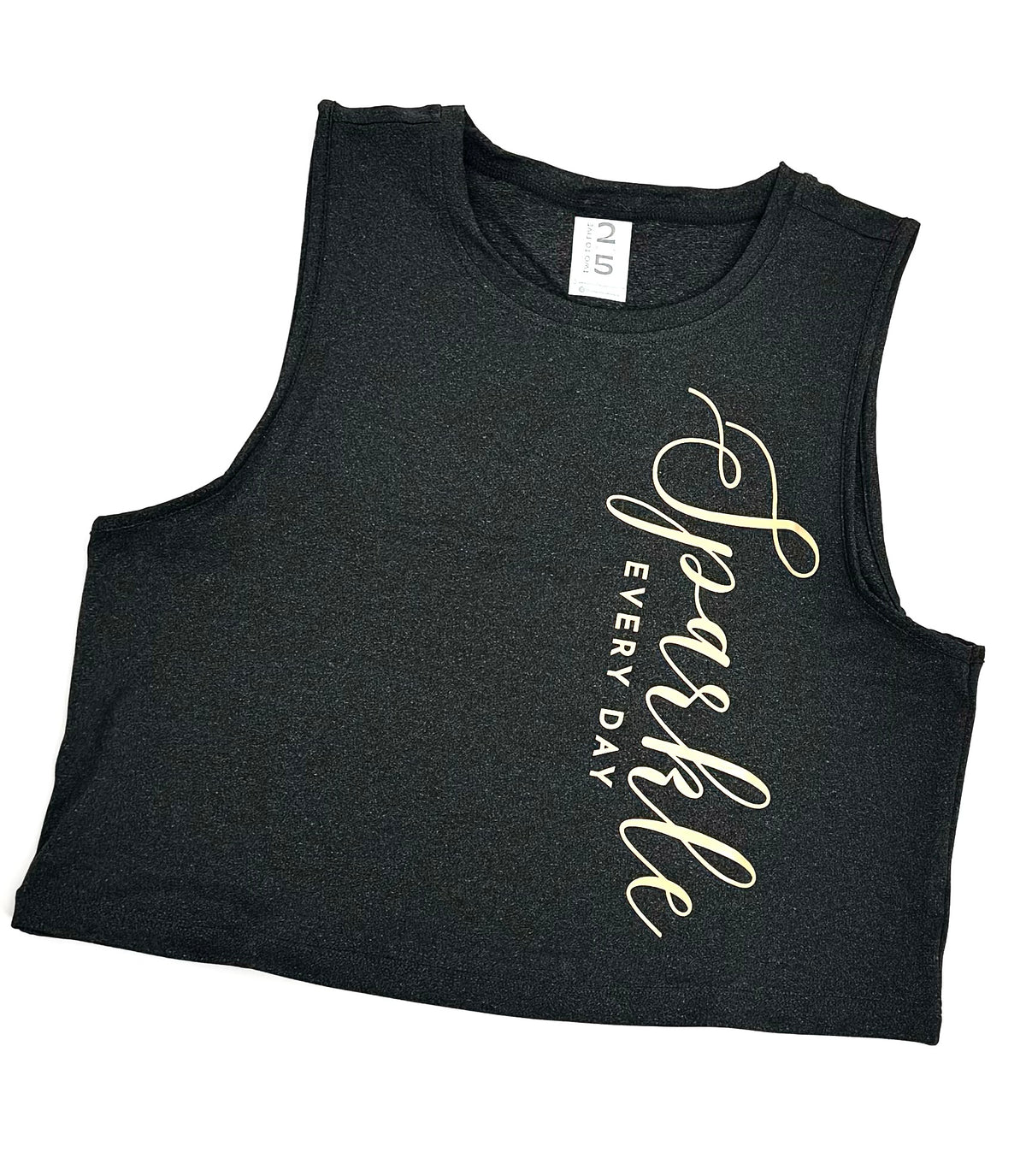 Made of spandex blend this super stretchy 'Sparkle Every Day,' workout/ hang out shirt is perfect to sweat in or sit around and binge Bravo in (no judgement).