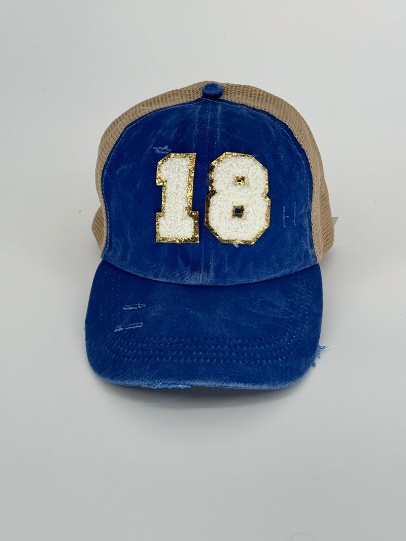 Lucky '18' blue ponytail hat