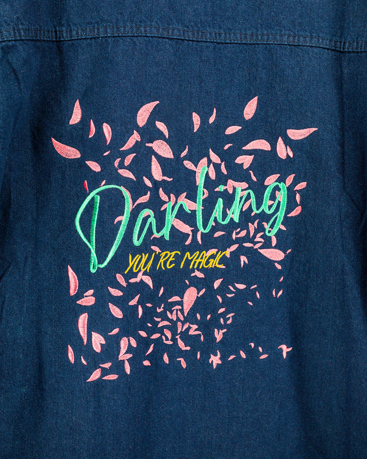 Darling YOU ARE Magic. Our button down denim shirt has embroidery on the back reminding you just how incredibly magical you are.