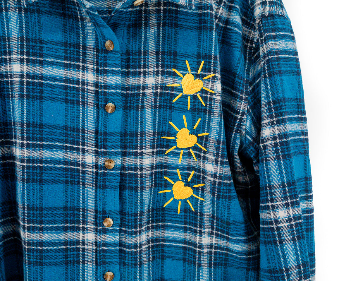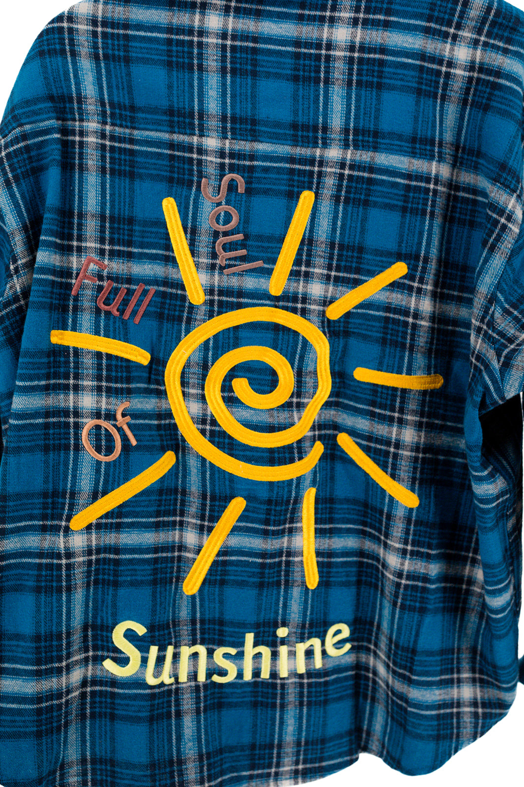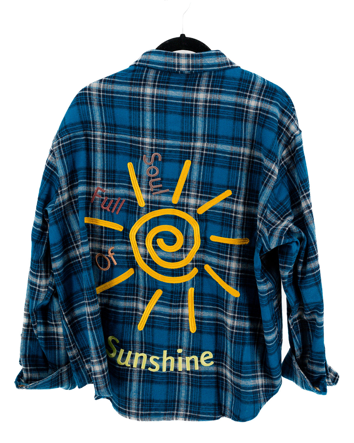 You really are 'SOULFUL' of sunshine! This fun plaid shirt will bring a smile to anyone who sees it. Embroidered on the front and back on to super soft fleece is perfect to wrap around your waist and throw on for a little warmth and style.